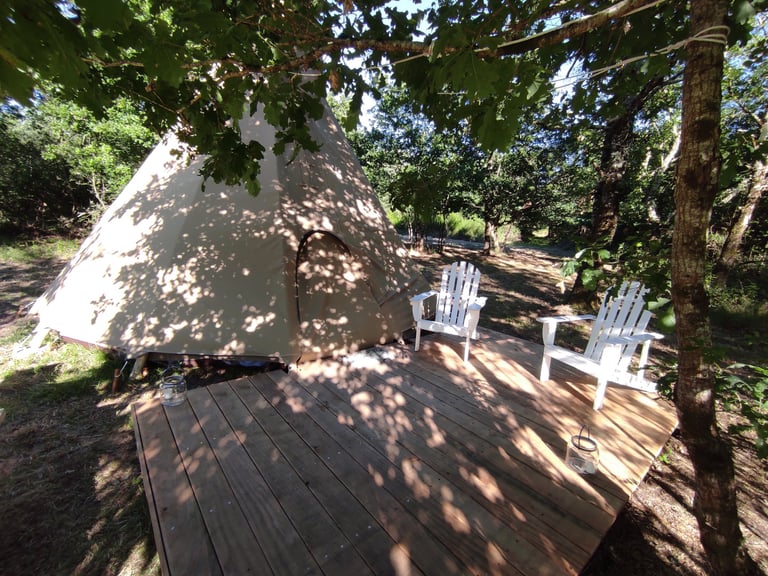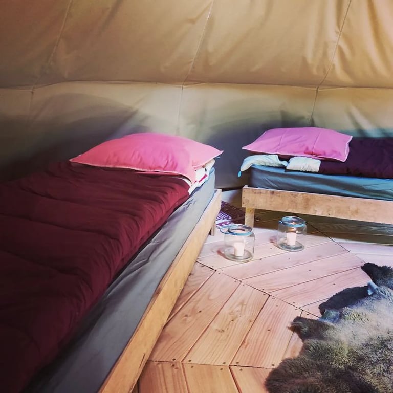 Parce que la nature n'est pas que sauvage vous aurez deux véritables lits (90*200) à votre disposition, des fauteuils, tables, toilettes sèches...